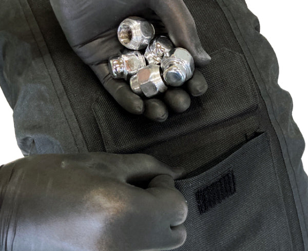 | Product Description | It can be easily attached to the tire with a hook-and-loop fastener. Comes with a pocket to store the nut. It is a set of 4 tire covers and 1 felt pad. Not only does it prevent stains on the surroundings during transportation and storage, but it can also be expected to have the effect of delaying tire deterioration due to ultraviolet rays. Ideal for storing race track tires and summer / winter tires. The tire size that can be accommodated is a tire outer diameter of 550 – 730 mm. Please refer to the following formula to check whether the tire can be accommodated from the general tire size notation. General tire size notation example (total tire width / flatness / inch: 295 / 30R19 "Total dimensions"> "Total tire width (mm)" + "(Total tire width (mm) x Flatness (%)) x 2" If the "total dimensions" is 480 mm or less, it can be accommodated. Example: 295+ (295 * 0.3) * 2 = 472mm |
