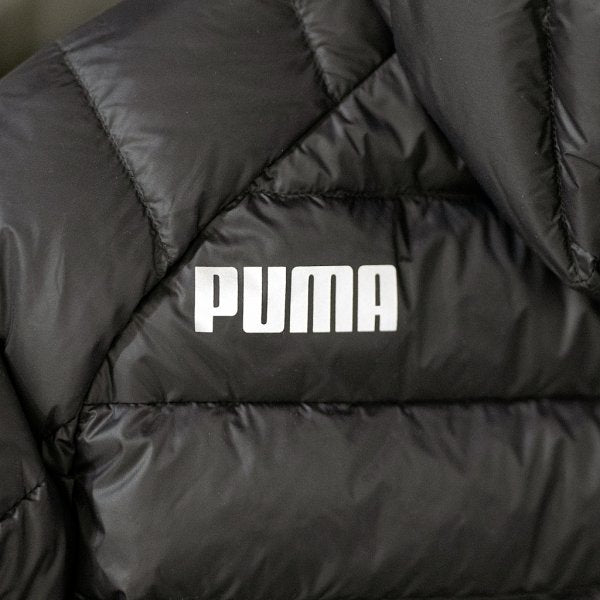Lightweight and comfortable to wear, it is extremely warm. It can be folded up and easily put in your bag. This jacket with a hood is excellent for protection from the cold and wind, and can be folded up and stored. The left chest features a double logo of PUMA and TOP SECRET. Name is used. Material: Nylon, polyester, down (feather) Remarks Color: Puma Black