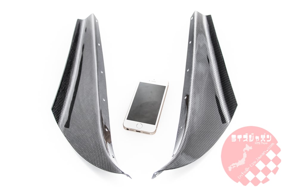 | Product Description | It is a carbon canard for exclusive use of S15 Silvia genuine bumper. In the design, the main body, stay part, and side flange (outside) are integrally shaped with carbon to increase the sense of unity. In order to achieve both performance and design, it finally became this shape. By integrating the stay and the main body, bolts, screws, rivets, etc. do not appear on the surface, so it is beautiful and has strength that general-purpose products cannot produce. The surface has a carbon and clear gel coat finish. Since the S15 owner is a popular model of FR, there are many people who are running radically, and it seems that there are many cases where GT wings etc. are installed and aerodynamics are also taken care of. We also paid attention to the aerodynamic balance and design of the front and rear, and recently set it for S15. It extends from the bumper side toward the front of the bumper as much as possible, and the mounting point is provided to the front end to prevent vertical synergies when downforce is applied, and pursues performance thoroughly. The strength is 4 plies in total. The stay part and side flap part have a rib structure, and the rigidity is sufficient. The dimensions are 41 cm in total length, which is longer in our canard series. The width is almost standard 7 cm. Since it can be installed only using the attached dedicated screw, it can be installed with a single Phillips screwdriver. Of course, there is also a hole for screws in the stay part. Since the bumper is made of urethane, there is no need to make a pilot hole. It is economical because there is no need to purchase mounting stays separately. The photo shows a sample product temporarily attached to the development bumper with tape. Please bid after seeing the photograph and being convinced. Since it was developed with the bumper you see, we do not match it with other bumpers. note that. The set includes only two canards on the left and right and mounting screws. S15 It is a carbon canard made exclusively for Silvia genuine bumper.Design, the body, stay part, |