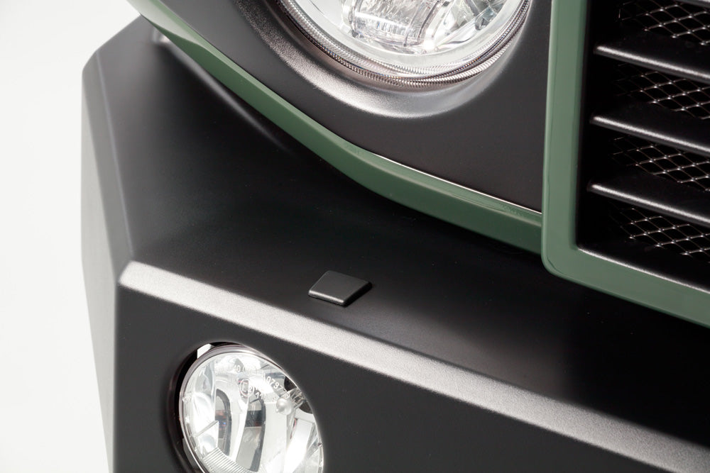The paint is a coarse matte black finishthat intentionally leaves a rough look , giving the face a rugged and powerful look that is characteristic of the Jimny.