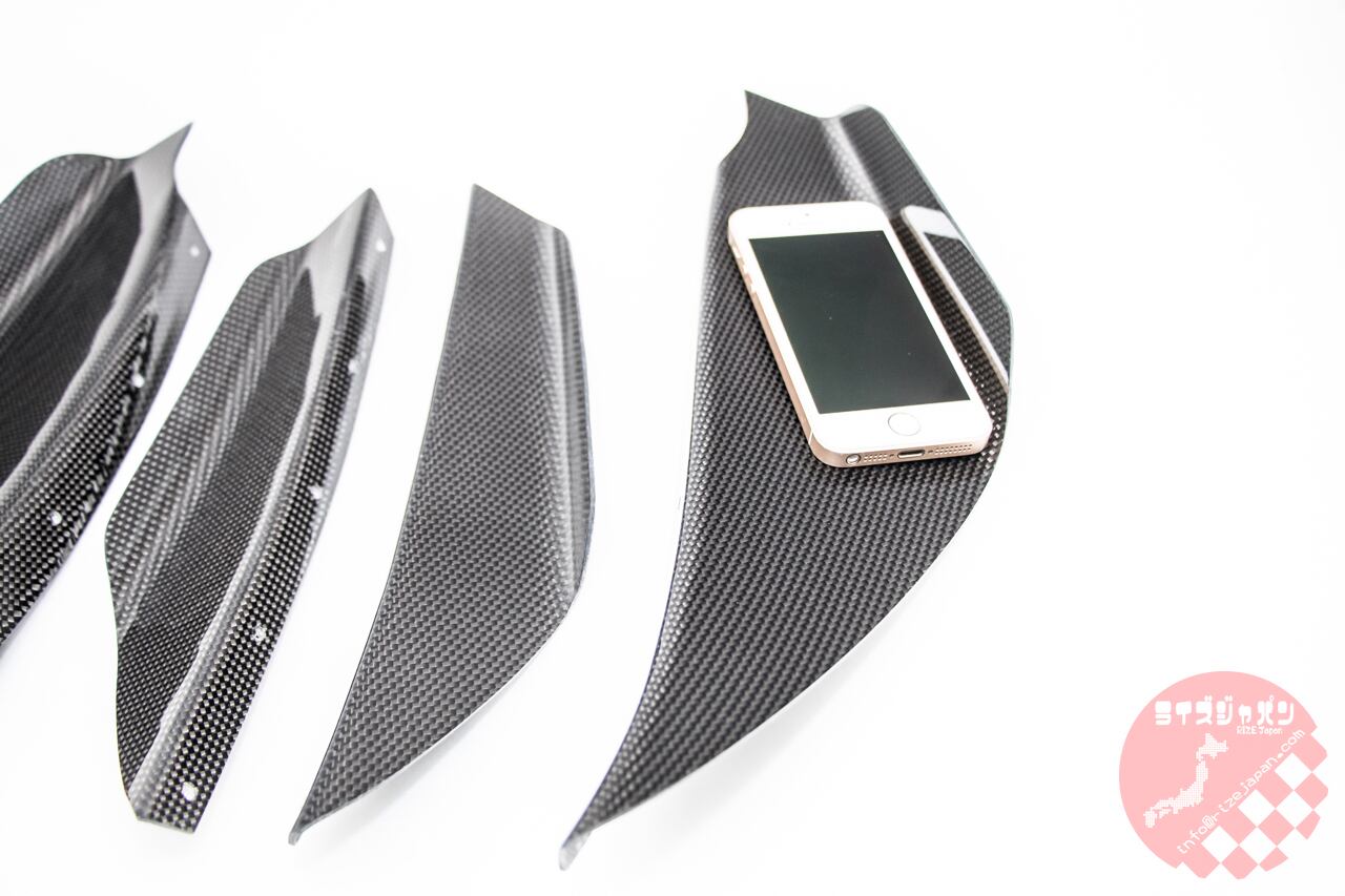 The design is carbon integrated shaping of the main body, stay part, and side flaps. By integrating the stay with the main body and sides, it is beautiful and has high strength without any screws or rivets appearing on the surface. In the case of GDB Imp, we have developed a special product for those who have a characteristic swelling on the bumper side and want to add a canard but it is an obstacle and hesitate to purchase a general-purpose product. The swelling of the side is matched by sandwiching it in the upper and lower two steps. In addition, the shape of the air outlet at the rear is designed to avoid swelling and maintain its size. The surface has a carbon clear gel coat finish, and the Impreza of the high power 4WD receives a sufficient down hose, so the plate thickness is secured as a total of 4 plies (5 to 6 plies depending on the location). It has a high-strength design such as taking more fixed points than usual. Since it can be installed only using screws, it can be installed with a single Phillips screwdriver. The design made the main body · stay part · side flap carbon has shaped.By integrating the stay and the main body side, it is beautiful without a screw or rivet on the surface, yet it is high strength.In the case of GDB Imp , there was a distinctive excitement on the bumper side, and even if you wanted to attach a canard, we developed a special item for those who had a hesitancy in purchasing general-purpose goods because of disturbing.