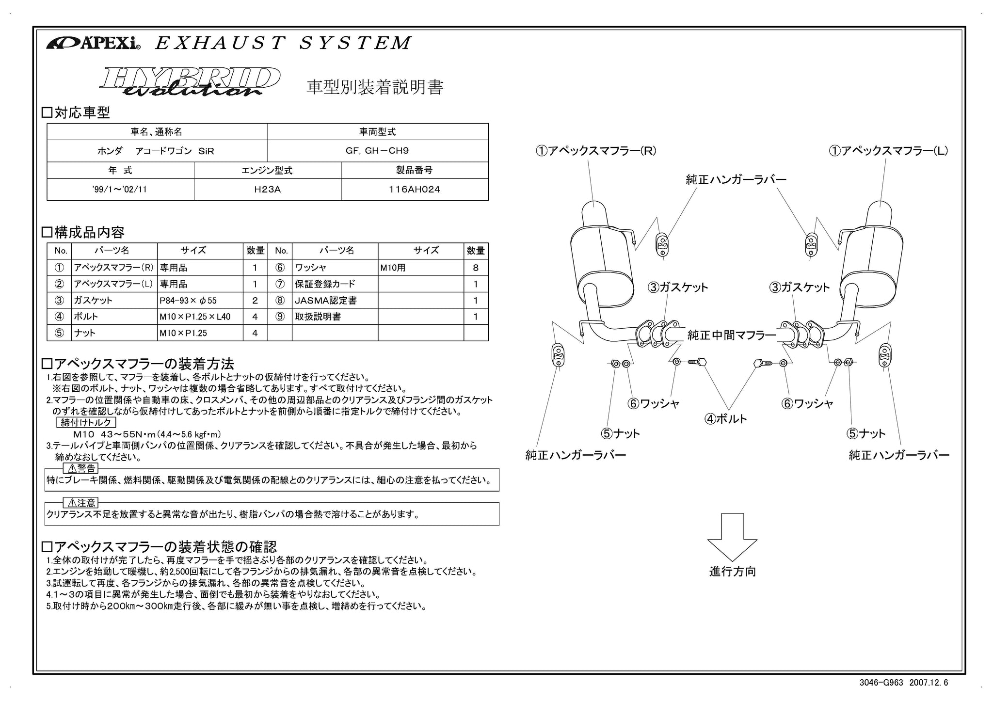 | Product Description | Model Year: 99/01-02/11 Main Pipe Diameter: Ï_54 Ã_ 2 No of Pieces: 2 Tail Diameter: Ï_105 Oval Ã_ 2 Exhaust System Type: Rear piece only Sound Level: Left 87 right 88 Ground Cleance :146 |