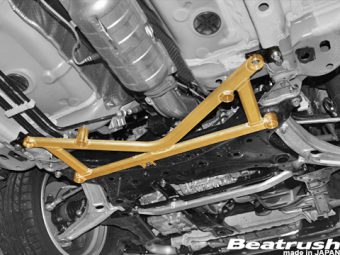 Beatrush front member support bar joint the suspension arm mounting bolt and the floor frame front part to raise the member floor rigidity and increase the front suspension performance body ridigity.