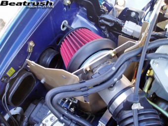 Intake air temperature greatly affects engine output. High temperature intake may cause power down and engine check lamp lighting. We enclosed it with a cleaner box to reduce hot air suction We found the optimum layout for suction pipe to raise both power and torque over the entire range from low rotation to high rotation by the trial of difference from thickness and shape.