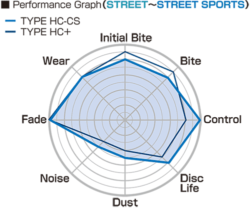 | Product Description | TYPE HC-CS brake pads provide linear control commensurate with foot pressure on the brake pedal, and maintain steadfast stability in all areas. |