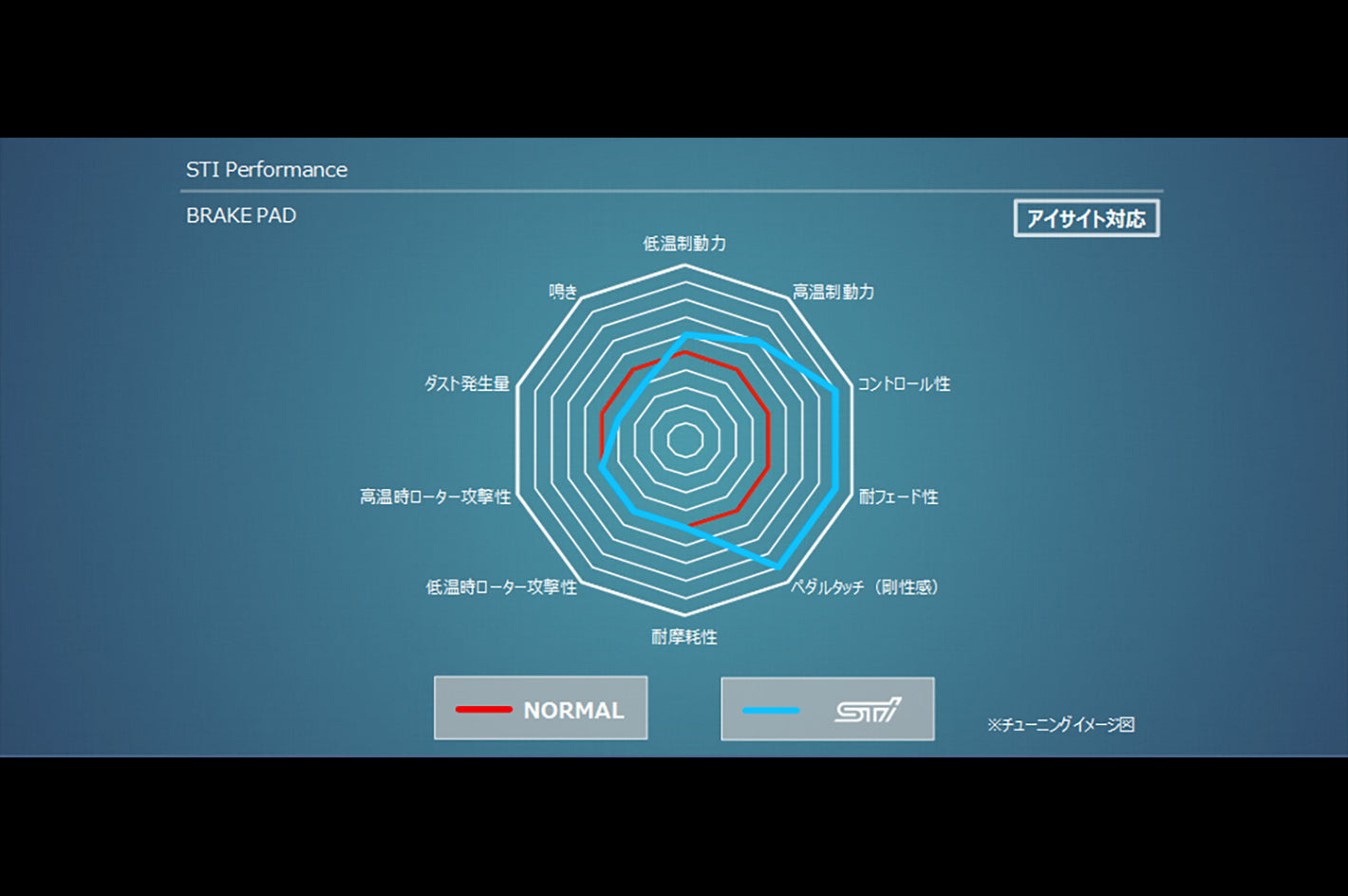 | Remarks | * Please use with the brake pad set R ST26296 ST100 or ST26296 ST170. * "Squeal" and "dust generation amount" in the radar chart indicate that they are worse than the standard pad. |