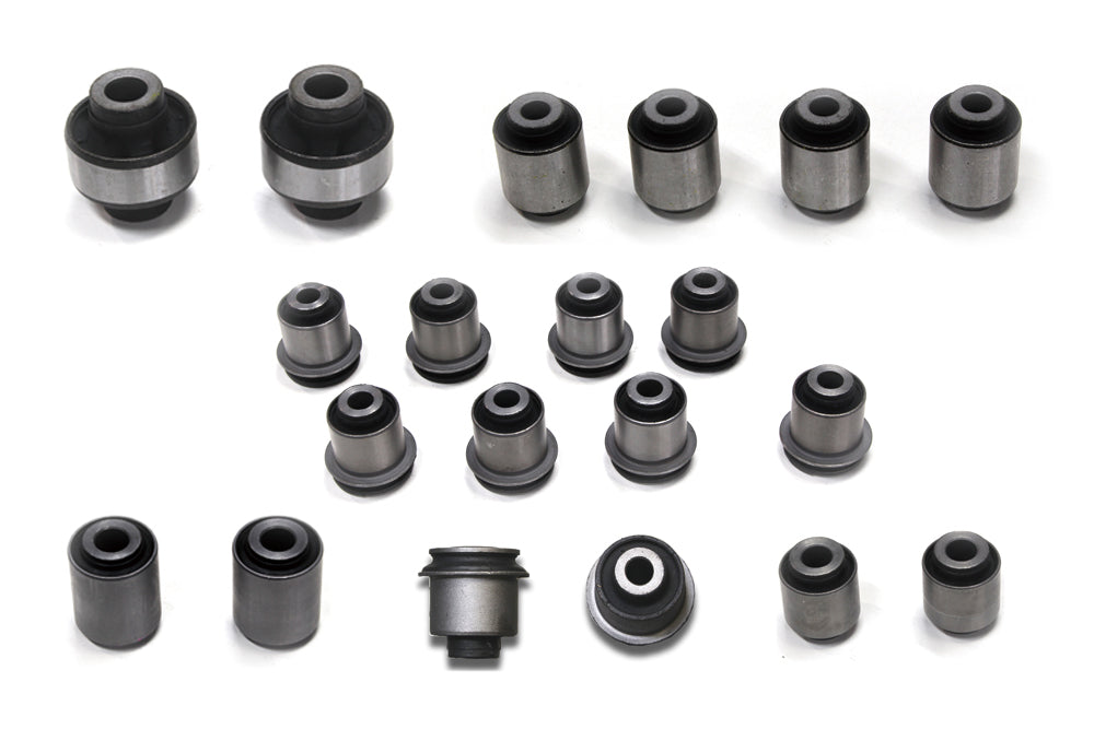 S2000 AP1 # 140 Reinforced rubber bush mount set for previous models. Depending on the model year, frequency of use, mileage, etc., the role of the rubber bush around the suspension is halved due to distortion, cracks, deformation, etc. Due to the settling of the rubber bush, the damper, spring performance and tire performance cannot be fully achieved, and the steering operation becomes slow. Front lower arm bush set x2 Front upper arm bush set x4 Rear upper arm bush x4 Colont compression bush x2 Front damper lower bush x2 Rear damper lower bush x2 Rear arm bush x2 Rear control arm bush x2 Total 20 pieces AP1 # 140 Previous model Reinforced rubber bush mount set.