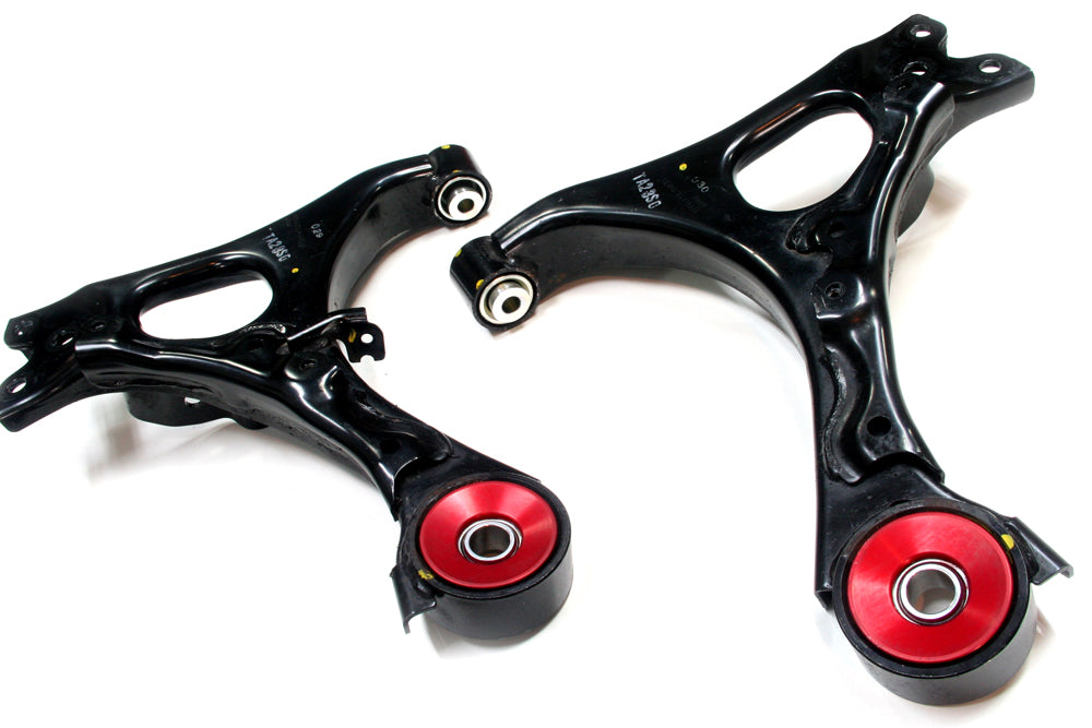 | Product Description | In order to keep the change in the geometry of the front suspension of the FD2 at an appropriate value, it is recommended to make the front lower arm pillow in order to eliminate the extreme deformation under load, which is a weak point of the rubber bush. As tuning parts for the lower arm, we have prepared three points: an adjustable compression pillow, a lower arm pillow, and an adjust type roll center adjuster. Press-fitting work with a press is required for installation, so please ask a pro shop. |