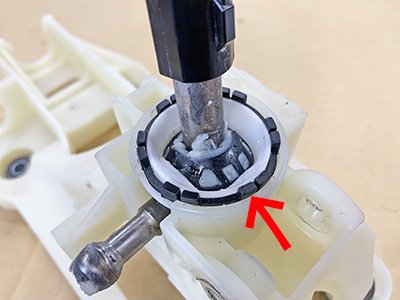 The base of the shift lever contains parts like a black rubber ring as shown by the arrow in the photo.