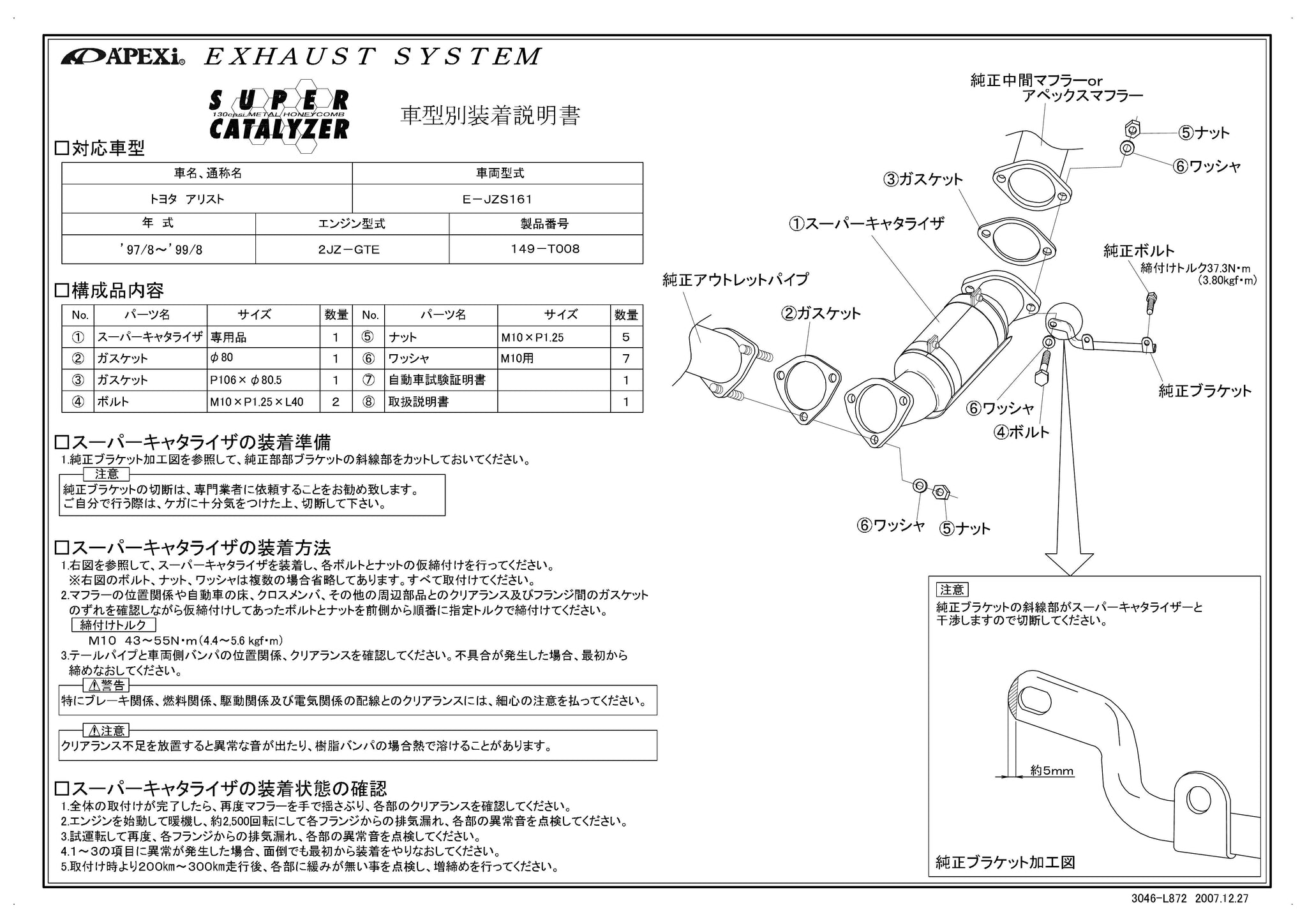 | Compatible Engine | JZS161 |