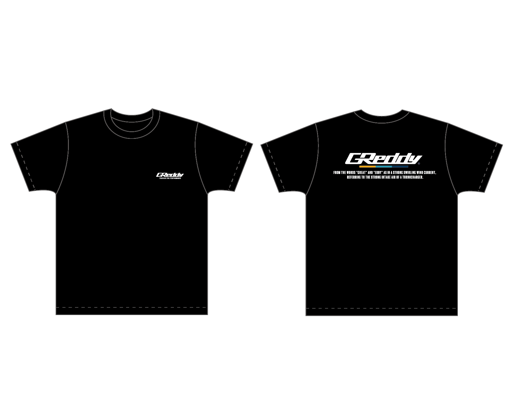 | Product Description | The T-shirt features the GReddy logo on the chest and the message on the back: "From the words 'GREAT' and 'Eddy' as in a strong swirling wind current, referring to the strong intake air of a turbocharger." (The words 'GREAT' and 'Eddy' evoke the strong swirling wind current and the powerful intake air of a turbocharger.)" [100% cotton] |