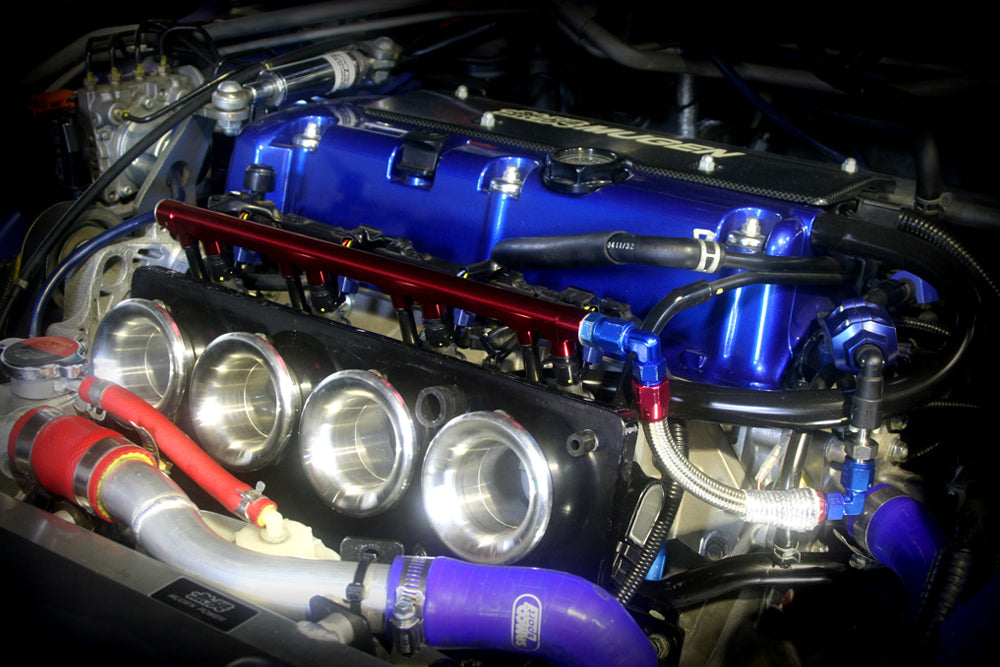 It is a 4-throttle sports injection with one throttle per cylinder. The sports injection with the characteristic of blowing up from low speed to high rotation at once is compatible with B type, K type, F type VTEC engine, racing engine It accelerates with good response while playing a high-pitched intake sound like. It is controlled by a dedicated ECU (Fulcon). Special tuning parts for vehicle inspection Characteristics / Fully equal length type for each cylinder Expansion of funnel shape injector setting position Funnel selection / ACCORD CL7 Throttle diameter φ50mm / Funnel 33mm Throttle diameter φ50mm / Funnel 63mm injector Reuse nozzle