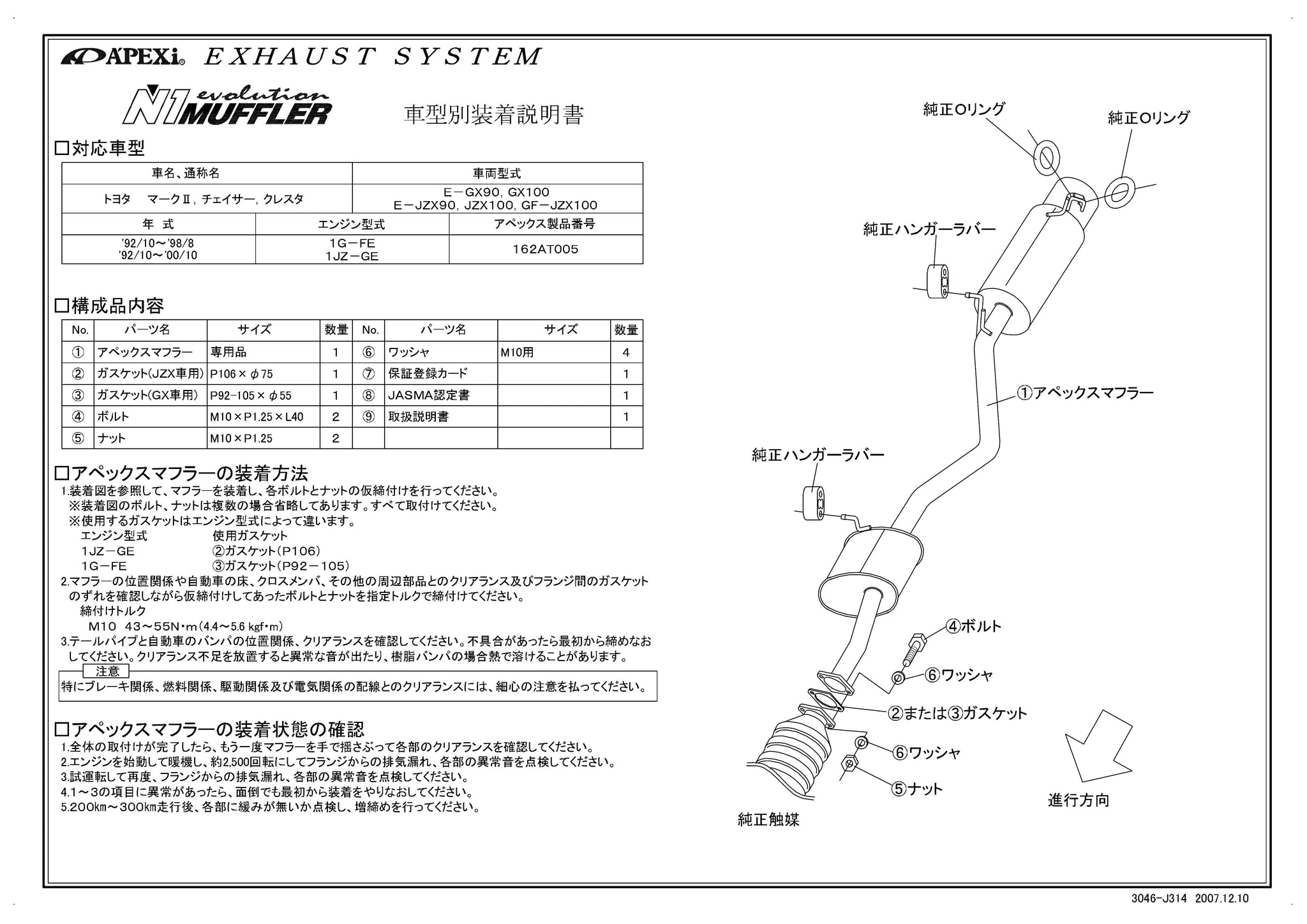 APEXI N1 Evolution Exhaust For TOYOTA Mark II Chaser Cresta GX90 162AT005