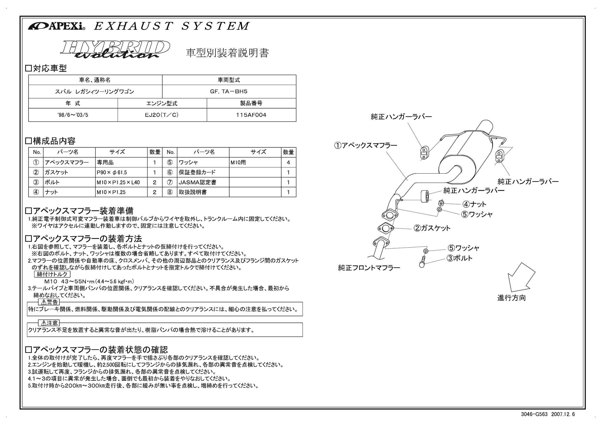 APEXI HYBRID MEGAPHONE Evolution Exhaust For MAZDA Legacy Touring Wagon BH5 115AF004