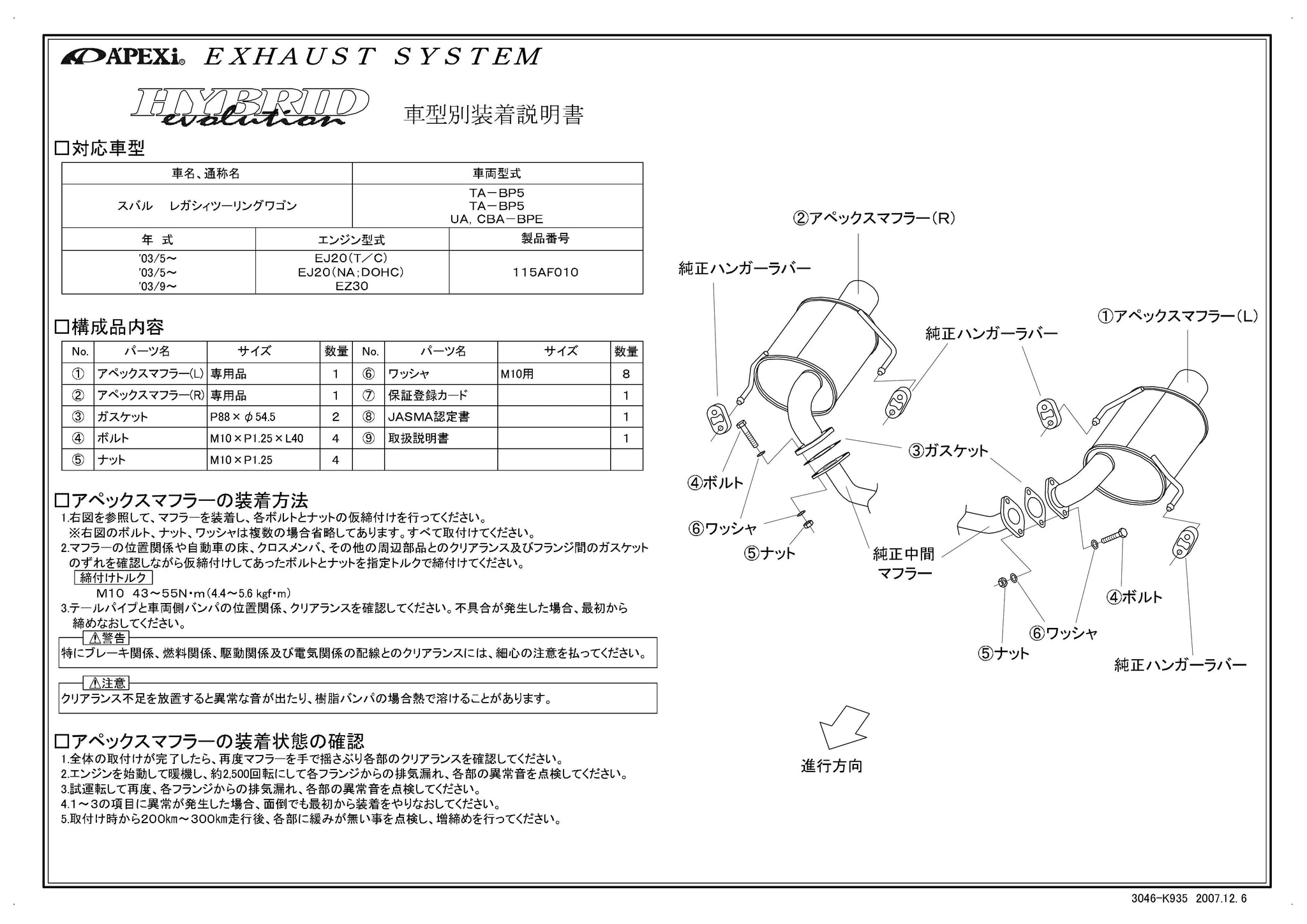 | Product Description | Model Year: 03/05-06/06 Main Pipe Diameter: Ï_60 Ã_ 2 No of Pieces: 2 Tail Diameter: Ï_115 Oval Ã_ 2 Exhaust System Type: Rear piece only Sound Level: Left 83 right 82 Ground Cleance :153 |