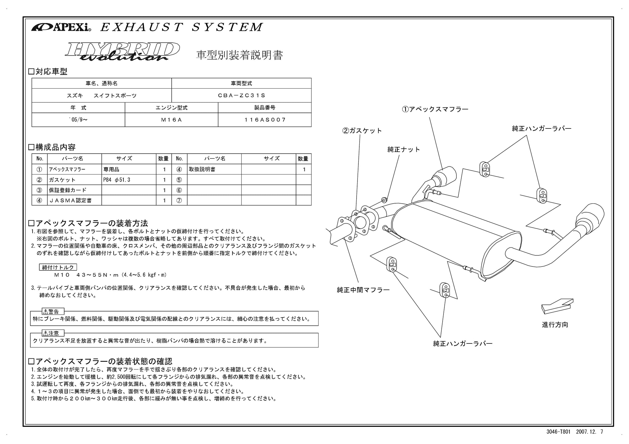 APEXI HYBRID MEGAPHONE Evolution Exhaust For SUZUKI Swift Sports ZC31S 116AS007