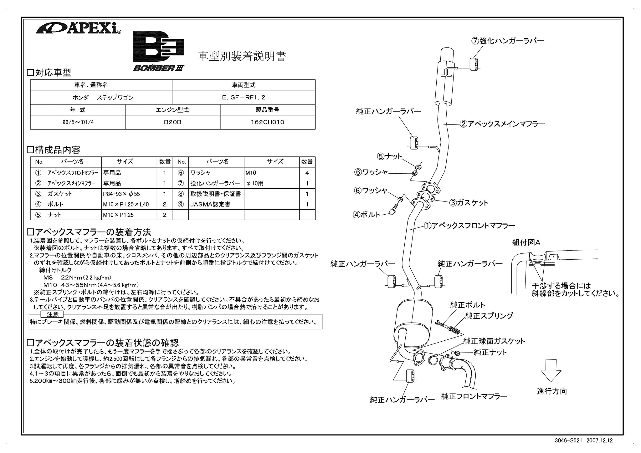 APEXI BOMBER 3 Exhaust For HONDA Step Wagon RF1 RF2 162CH010