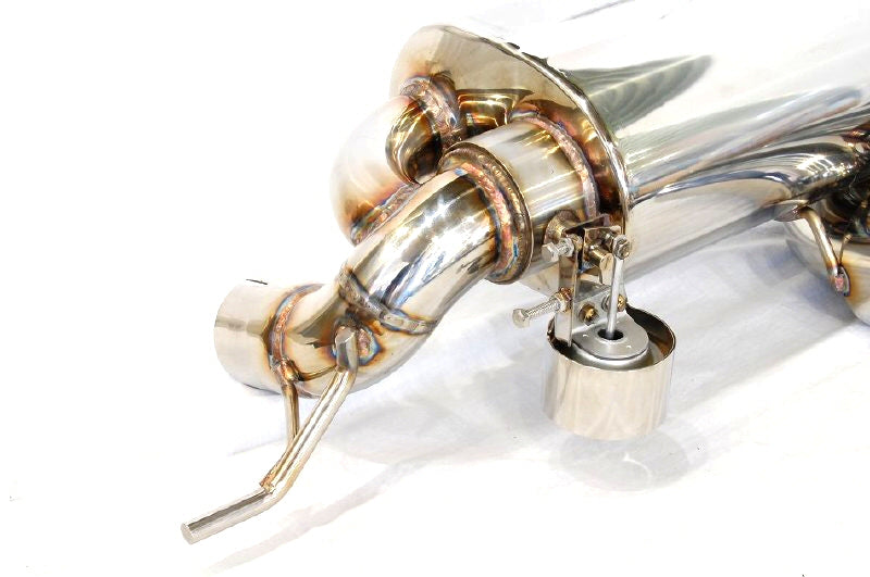 | Product Description | KIT Contents: Valvetronic Exhaust System (With Volume Switching) / Laser Wolf V.T.Material: Stainless SteelSpecifications: CaterbackTail Shape: 2x80mmStandard Switching Method: Laser Wolf V.T (Remote Control) Total size of three sides : 200cmOur exhaust systems are characterized by the combination of metals with different properties to create a unique tone. Therefore, they are completely handmade and all made to order. Delivery time usually takes 14 to 20 days, depending on the order.Volume setting:When ordering, you can choose from 5 exhaust volume levels.The standard settings are Silent Mode: Level 2, F1 Mode: Level 5.The most popular combination is Silent Mode: Level 2, F1 Mode: Level 5.Volume Levels: Level 1: Equal to normal muffler soundLevel 2: Quiet sports muffler soundLevel 3: Slightly louder, high-pitched sports muffler soundLevel 4: Loud, high-pitched sports muffler soundLevel 5: Explosive sound, super high-pitched sound |