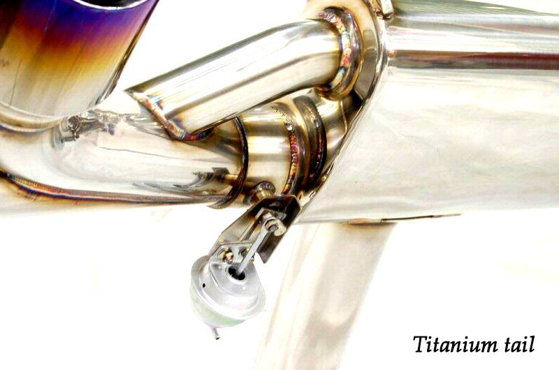 CAT-BACK F1 SOUND VALVETRONIC EXHAUST SYSTEM TITANIUM FLOATING CURL TAIL SANDBLASTED KSG LOGO MARK