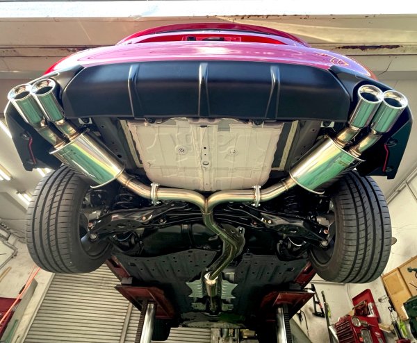 | Product Description | This is a 4-piece muffler kit that can be used with the FL1 genuine muffler garnish removed, or with our TYPE-2 muffler dedicated muffler garnish (sold separately) installed. This product is an exhaust system that demonstrates a high level of performance not only when using a genuine ECU but also when boosting up with a tuned ECU. Durability was emphasized rather than weight reduction such as each pipe and flange thickness. In addition, by adopting an oval shape silencer, a large capacity can be secured, and stable noise reduction performance can be obtained without relying only on sound deadening materials. As a result, it is possible to minimize the increase in volume due to deterioration over time, which is particularly worrisome in turbo cars, so it has the advantage of being able to be used for a long time compared to the muffler designed with a cannonball type silencer. In the case of FL1, if exhaust efficiency is sought and the muffler volume is increased, there is a tendency for "boiling noise" to occur especially around 3000-4500 rpm. At our company, during development, we repeated repeated tests with the goal of achieving a high level of compatibility between "exhaust efficiency" and "reducing muffled noise as much as possible." As a result, by installing more silencers than usual and optimizing the internal structure of the silencers, we have achieved a significant reduction in muffled noise, a turbo-like exhaust sound, and a highly balanced exhaust efficiency. The finisher of this muffler KIT is a 90Φ4 inner curl/slash specification. When boosting up with a tuned ECU, etc., you can use the optional FRONT PIPE together to achieve a higher level of performance. It is also effective when you want more punch in the volume. *There is a tendency for the volume to increase by about 2dB compared to when only this muffler KIT is used. This product is a set of intermediate pipe + tail silencer. *Front pipe is sold separately. *The image with text is the one with this product installed with the genuine muffler garnish removed (dedicated muffler garnish not used). *All images without text are when the separately sold TAKEGAWA muffler garnish is installed at the same time. A muffler garnish is not included with this product. be careful. *Since it is necessary to remove the genuine muffler garnish when installing this product, a special stay (made of stainless steel) that fixes the end part of the genuine diffuser and center rear bumper is included with this product. *Our dedicated muffler garnish is not included with this product. If you need it, please purchase "Muffler Garnish for FL1" (sold separately). *If this muffler is installed without using the special garnish (sold separately), the finisher protrusion dimension will fit within the overall length of the vehicle. There is Please check in advance. FL1 CIVIC (Vehicle type 6BA-FL1) Fits MT/CVT vehicles. S.E.S. Muffler KIT TYPE-2 for FL1 CIVIC 6MT/CVT main materials stainless steel (including finisher) main pipe diameter 60.5Φ finisher diameter 90Φ×4 (inner curl/slash tail) unit weight: approx. Measured value) *+2dB is a guideline when installed together with our front pipe (sold separately). Safety standard compliant product (pre-certified) Set product of vehicle inspection compliant intermediate pipe + tail silencer *Front pipe and muffler garnish are sold separately. be careful. When used together with our front pipe (sold separately), it will also be subject to vehicle inspection. |