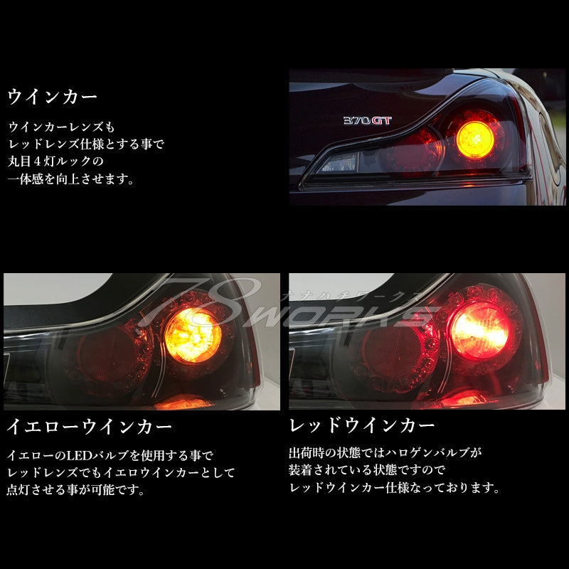 | Product Description | One set (left and right) - Built-in US side markers - Comes with 78WORKS original instructions - Built-in reflectors - Plug-and-play connection - 180-day LED burnout warranty By installing yellow LED bulbs in the turn signals, you can turn them into yellow turn signals. We have received many positive feedback that using the turn signal LED bulb (T20) sold by Mameden will make the turn signals glow yellow. [Compatible Vehicles] CKV36 G37 US Infiniti V36 Skyline Coupe All Models and Grades |