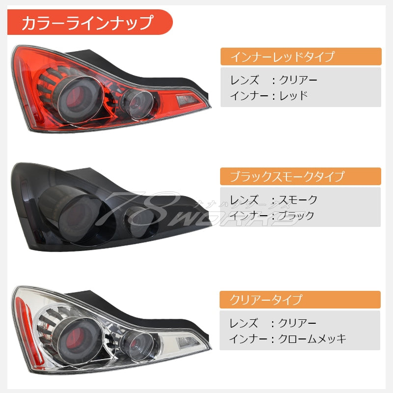 | Product Description | ▼Extremely rare parts not available in Japan. We have a limited supply of these parts, only available in the US. Once they're out of stock, they'll be gone, so don't miss out! ・One set (left and right) ・Includes original 78WORKS instructions ・Built-in reflectors ・Plug-in connection ・180-day LED warranty ・Built-in US side markers *ON/OFF switchable [Compatible models] CKV36 G37 US Infiniti V36 Skyline Coupe Compatible with all years and grades |