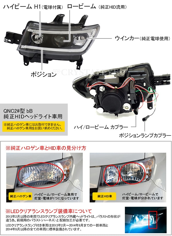 Popular products are now available as a value set!! [LED light bar headlight black type] [LED tail lamp V2 (flowing turn signal type) Crystal Eye QNC 20 series bB current BMW type fiber LED tail lamp]. We have set a better price than purchasing them separately! This page shows the headlights as [black type, for genuine HID cars]. The tail lights are [red clear type] [red smoke type] [clear type] [smoke type]. Please choose the LED tail of your favorite color. The masterpiece of bB commercially available LED tail. This is the latest model where the fiber shines brightly when the position is ON. When the brake is ON, the LED grains light up in a U-shape like a Porsche Panamera. The high-brightness LED turn signal (built-in high-flash prevention resistor) decorates the rear view like a luxury European car.