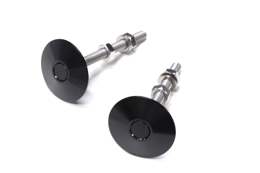 | Product Description | A one-push lock pin ideal for bonnets, trunks, bulkhead panels, etc. The lock can be easily unlocked by simply pressing the center button to set and remove the object by lightly pressing it. Two colors are available, black and silver. The head part is made of aluminum, which keeps it clean without rusting. We have secured a size of 60φ that is optimal for safety and security for the bonnet. |