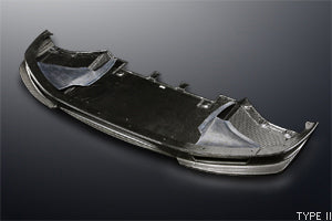 carbon front spoiler with a simple and sophisticated design. The base part is made of honeycomb and is molded with dry carbon. This manufacturing method is also used in racing cars, and allows for high strength and light weight. The shape creates an absolute amount of downforce that is not found in normal spoilers, and is effective at medium and high speeds. The mounting part is the same shape as the normal spoiler, and the diffuser part is integrated, so it can be installed with a bolt-on. The surface is clear painted, giving it a luxurious feel. TYPE II has an enlarged lip part by 15 mm and a duct for brake cooling. The weight of TYPE I is about -3.9 kg (-65%) compared to the genuine 6.0 kg. TYPE II is about -3.1 kg (-52%) lighter. TYPE III is a minor change version of the popular carbon front spoiler TYPE-II. TYPE-? has an enlarged lip part by 10 mm and a 15 mm wide side part. Like the TYPE-?, it has excellent streamlining effects and is effective at medium to high speeds. The base is made of honeycomb material and is molded from dry carbon. This manufacturing method is also used in racing cars, allowing for high strength and lightweight design. The weight is approximately 3.1kg (52%) lighter than the genuine product. *Reinforcement plate included Specifications TYPE I Dry carbon twill Weight (normal 6.0kg) 2.1kg