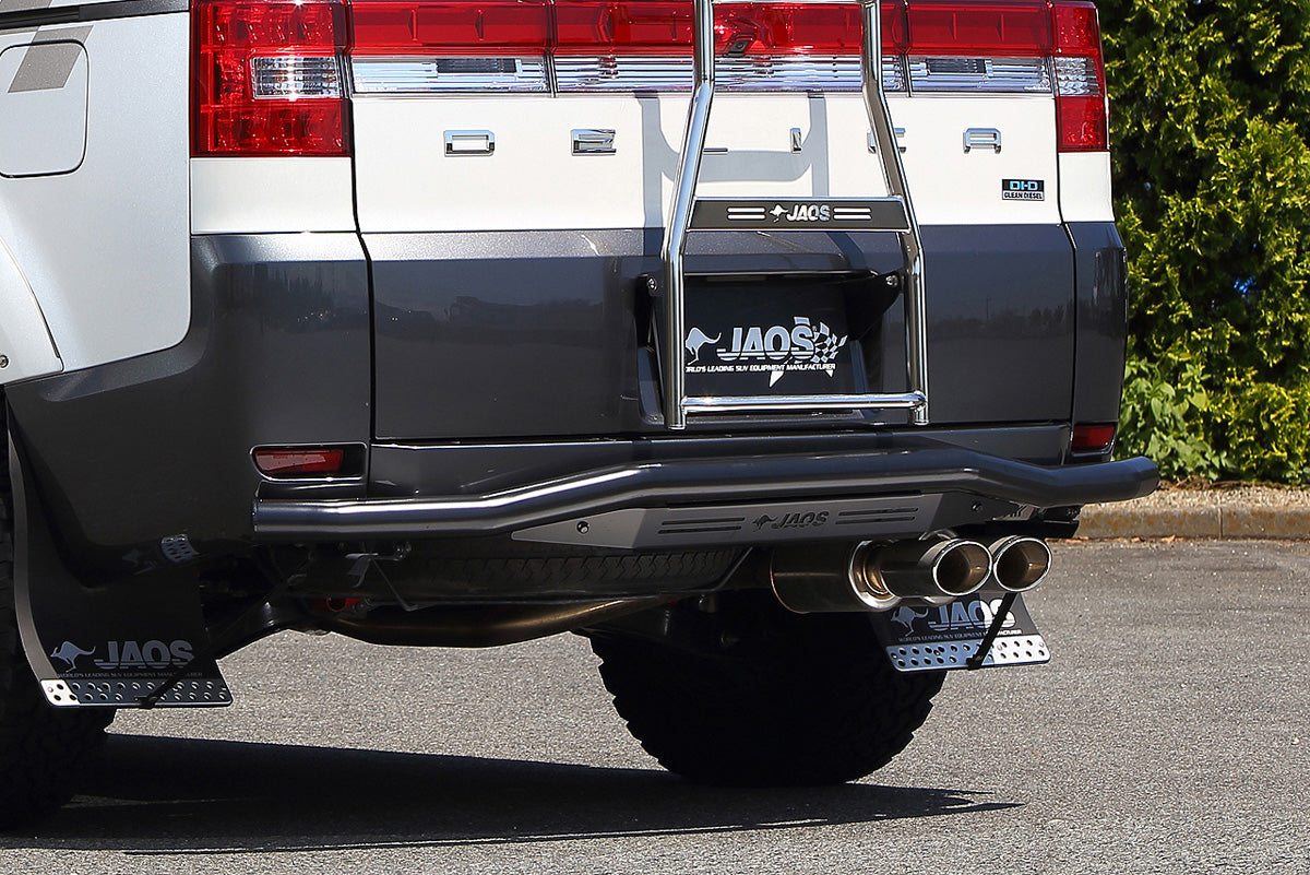 | Product Description | The "JAOS Rear Skid Bar" protects the rear bumper of a 4WD & SUV, which is easy to hit when retreating, with a tough stainless steel tube. Comes with a backup lamp bracket and logo plate. Product details: Bar, plate, bracket, backup lamp bracket Specifications: Bar: Stainless steel, 60.5φ, Black powder coating End cap: ABS plate: Stainless steel, 2.5t, Black powder coating bracket : Stainless steel, cationic electrodeposition coating |