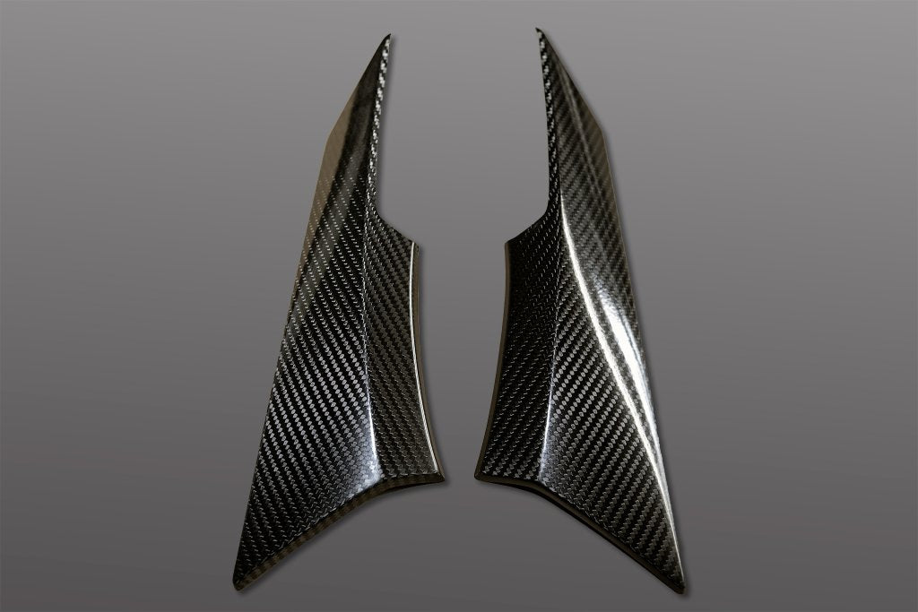 | Product Description | This front pillar cover will beautifully show the line from the bonnet to the pillar when used in combination with our "Dry Carbon Bonnet (with duct/normal shape)". Installation is a bolt-on that simply requires fixing with double-sided tape. Material: Dry carbon Compatible models: RZ34 Notes: *Unpainted ■Accessories: Double-sided tape Our aero parts are manufactured on the premise that they will be installed at a sheet metal factory. |