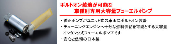 | Remarks | * Be sure to use the pump harness kit when replacing. * Discharge rate is for fuel pressure 3.0kg / cm2 (14V)) * 1: Wiring coupler and terminals are not included. |