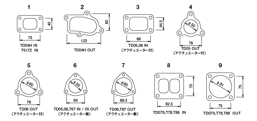 * IN = EX Manifold side, OUT = Front Pipe / Turbine Outlet side