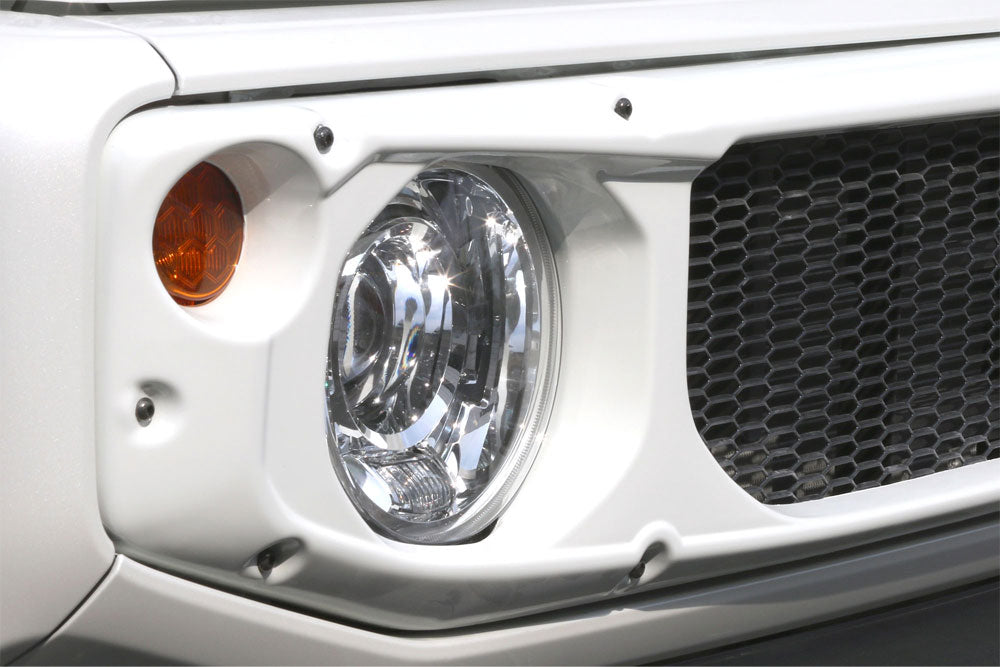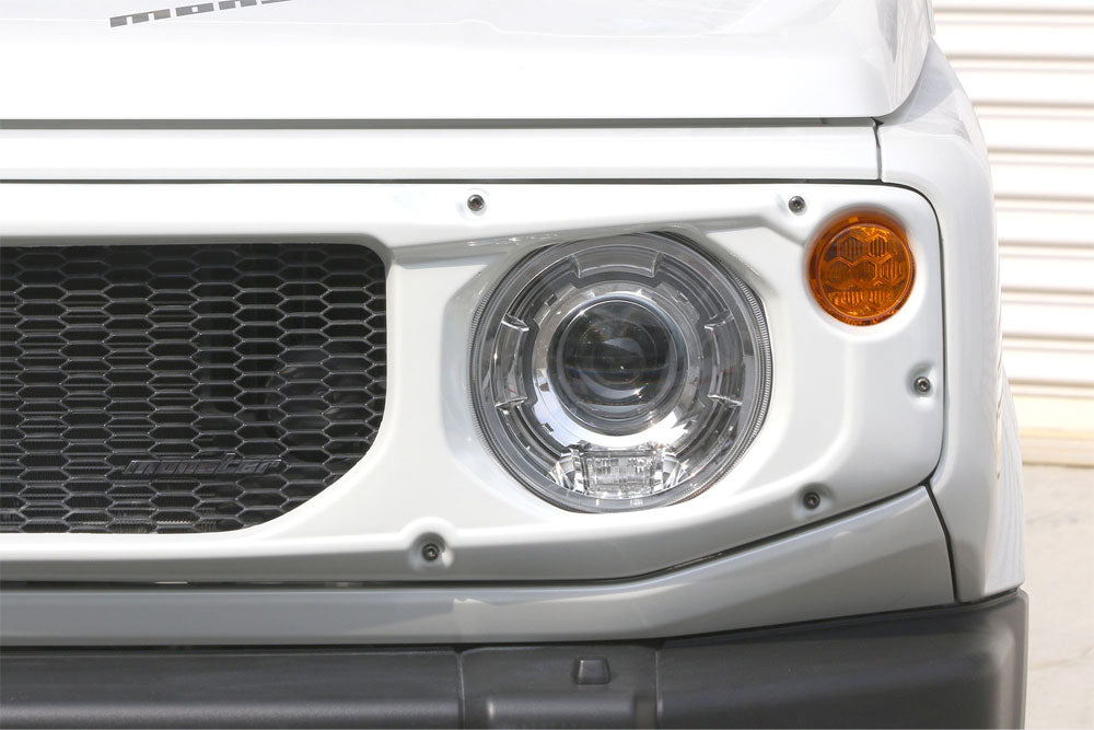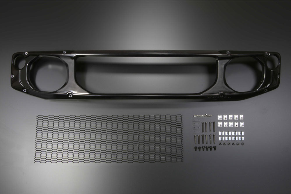 | Product Description | YEAR MODE: 2018/07- Type: 5MT/4 AT 4WD Material: ABS Color: Unpainted Set contents: Front grille body , mesh (powder coating finish), turn signal bracket A x 2 , turn signal bracket B x 2 , installation spacer set , MONSTER emblem , bolts and nuts set , instruction manual Installation: ・Replaces the stock front grille . ・Installation requires drilling two holes in the bottom of the stock headlight bracket. * Painting is required separately. |