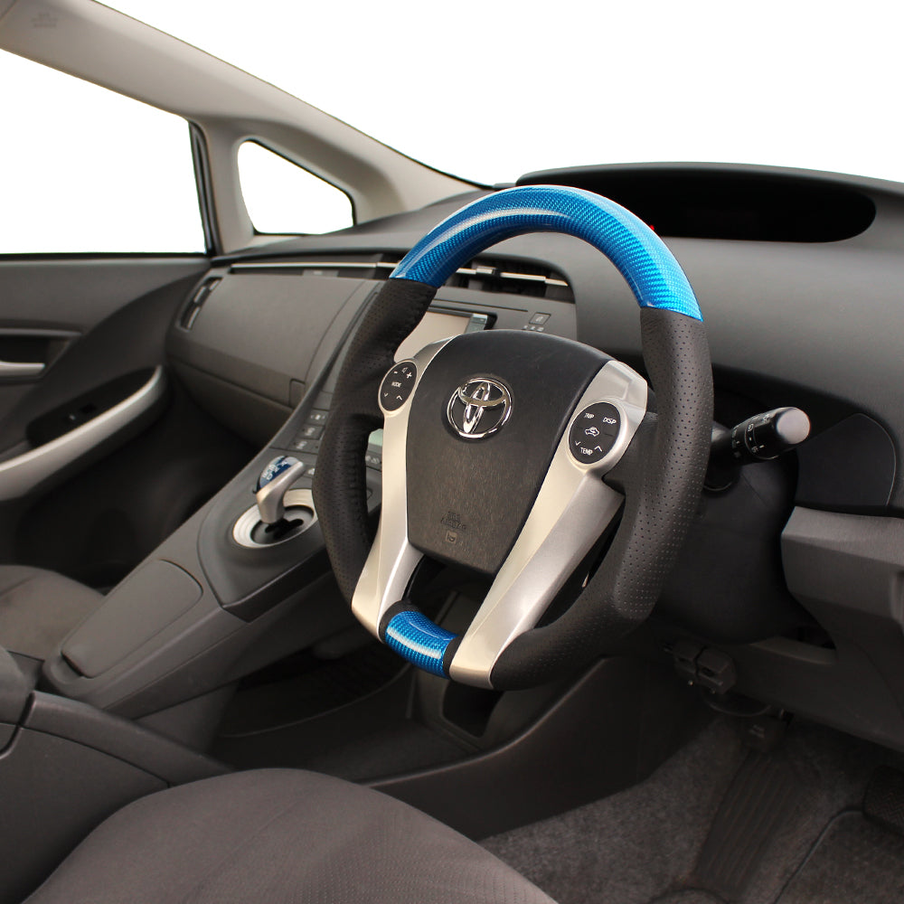 REAL ORIGINAL SERIES OVAL SHAPE BLUE CARBON BLACK STITCH STEERING WHEEL FOR TOYOTA PRIUS 30 30-2-BLC
