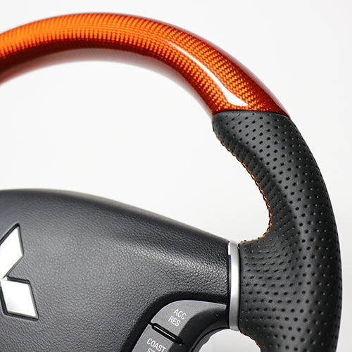 REAL ORIGINAL SERIES ROUND SHAPE ORANGE CARBON ORANGE X BLACK EURO STITCH STEERING WHEEL FOR MITSUBISHI PAJERO V8 W V9 W D5-ORC-OR