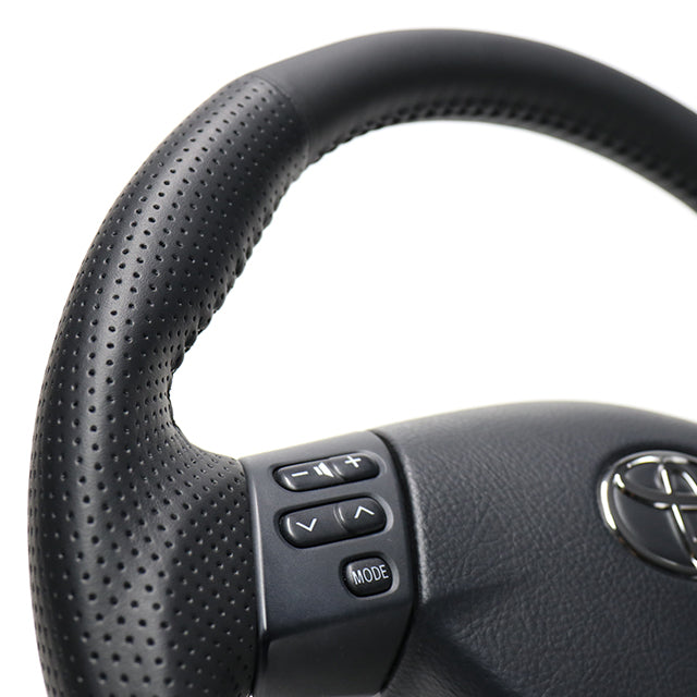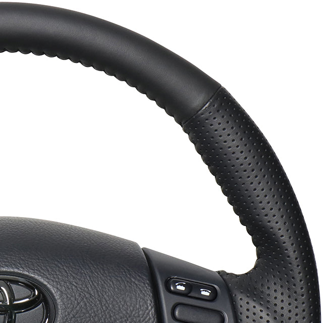 REAL ORIGINAL SERIES SOFT D SHAPE ALL LEATHER BLACK STITCH STEERING WHEEL FOR TOYOTA HARRIER 30 FJH-LPB-BK
