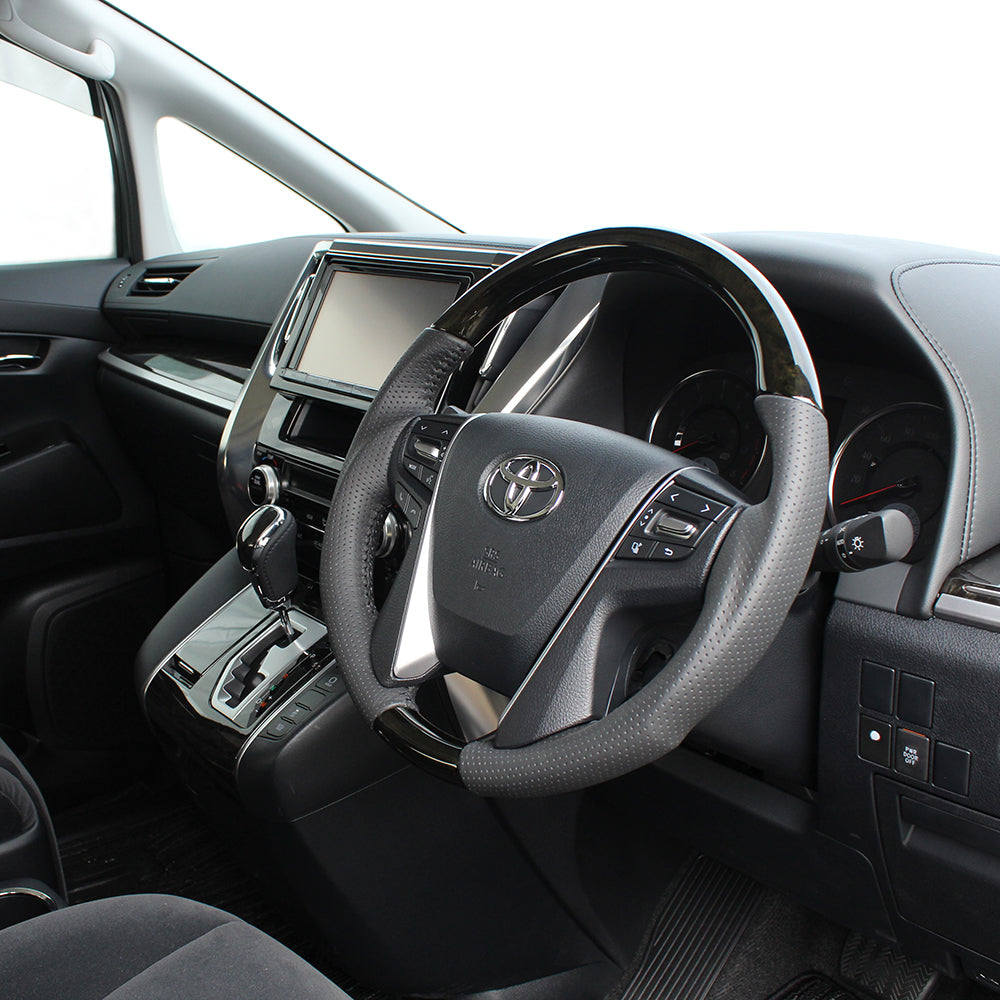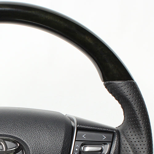REAL ORIGINAL SERIES ROUND SHAPE BLACK WOOD BLACK STITCH STEERING WHEEL FOR TOYOTA CROWN ATHLETE 210 H30-BKW-BK