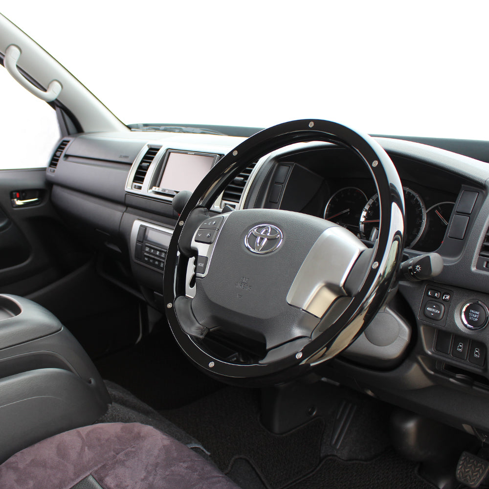 | Series Name | ORIGINAL SERIES ALL WOOD ROUND SHAPE PIANO BLACK STUDS BLACK EURO STITCH STEERING WHEEL |