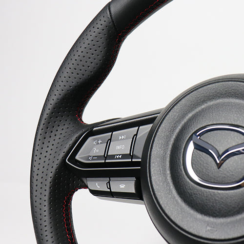 REAL ORIGINAL SERIES SOFT D SHAPE ALL LEATHER RED X BLACK EURO STITCH STEERING WHEEL FOR MAZDA CX-5 KF MZD-LPB-RD
