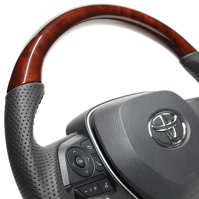 REAL ORIGINAL SERIES SOFT D SHAPE BROWN WOOD BLACK STITCH STEERING WHEEL FOR TOYOTA CROWN 220 TYA-BRW