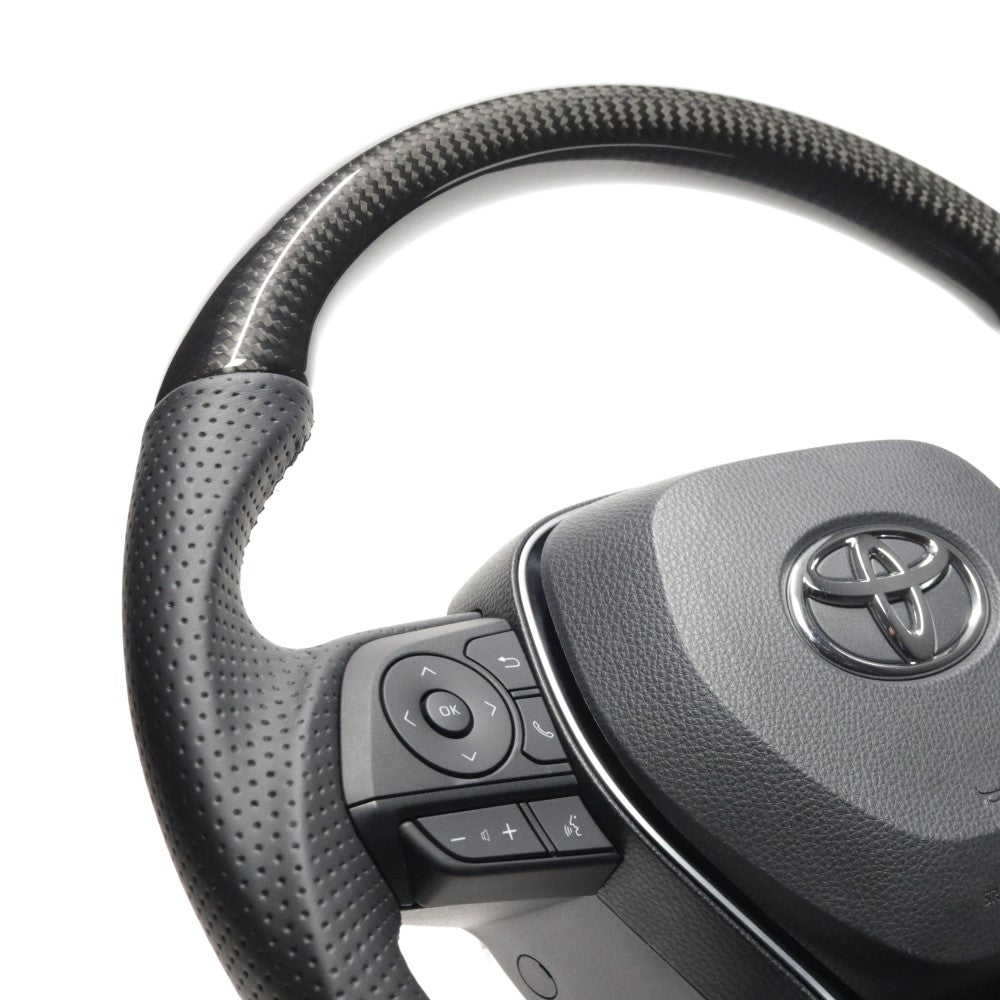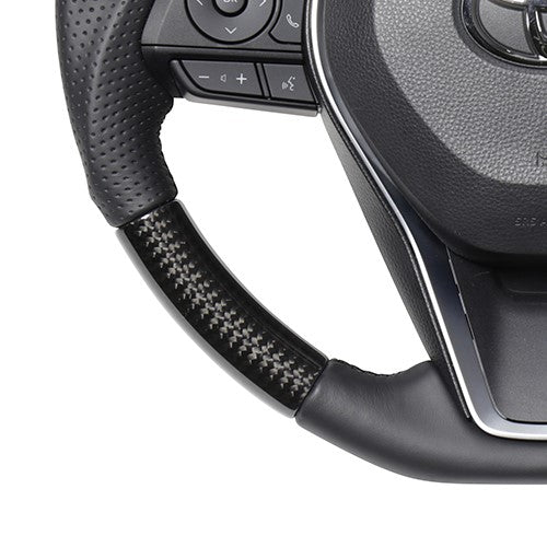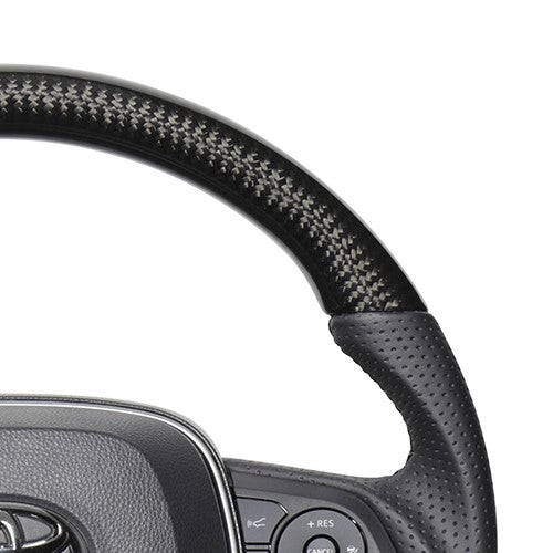 REAL PREMIUM SERIES SOFT D SHAPE BLACK CARBON BLACK EURO STITCH STEERING WHEEL FOR TOYOTA RAV4 PHV 50 TYFP-BKC