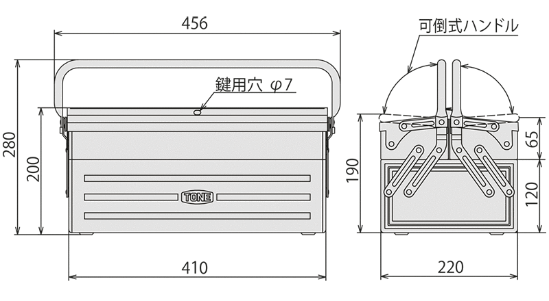 | Product Description | Introducing the original toolbox made by TONE. The double-door structure allows you to see the contents at a glance, making it easy to put things in and take them out, and the top shelf comes with a movable divider for organizing small items, making it extremely easy to use. The foldable handle makes the top flat, saving space. It has a 7mm diameter keyhole to protect your important tools. Comes with an aluminum plate with the HKS MotorSport logo. Oil-colored stickers are included so you can decorate it to your liking. Weight: 4.2kg |