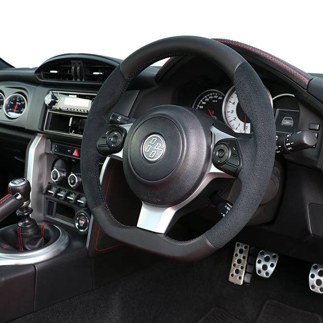 REAL ORIGINAL SERIES D SHAPE BLACK LEATHER & BLACK ULTRA SUEDE BLACK EURO STITCH STEERING WHEEL FOR TOYOTA 86 ZN6 KOUKI GR-ALC-BK