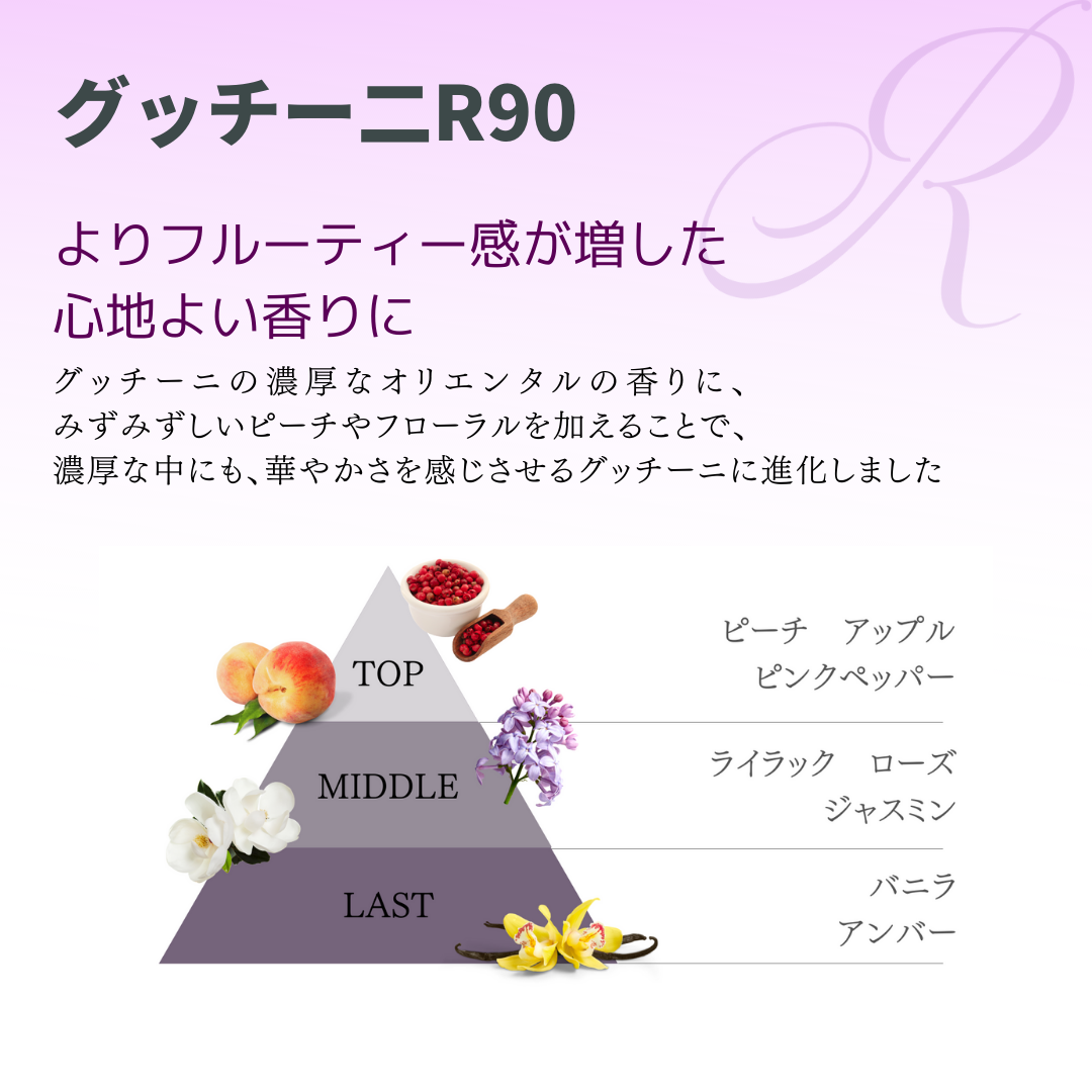 | Remarks | Precautions : *The internal structure of the can has been improved for R90. Do not open the bottom lid when first using. (Guideline: about one month)*Since natural fragrances are used, the contents may discolor, but this does not affect the quality. |