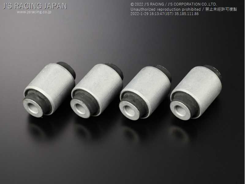 | Product Description | Material: Spacer: Forged aluminum A6061-T6 Bolt: Chrome molybdenum steel Reinforced bush for front lower arm. By using a reinforced bush with high hardness and excellent durability, bush deformation during cornering is reduced. In addition to improving straight-line stability at high speeds, it achieves more direct handling and quick steering response. A must-have item on all stages from street to circuit. ● A set of 4 pieces. |