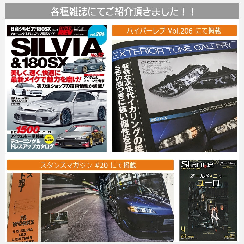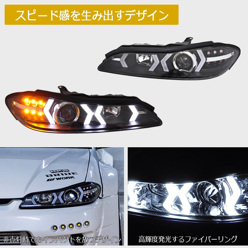 ■One set for left and right ■Reliable Japanese beam specification ■Includes original 78WORKS instruction manual ■Up/down/left/right beam axis adjustment function ■Can be connected using the included coupler wiring *Wiring couplers are included that are compatible with not only genuine HID/halogen but also aftermarket HID, so there is no need to cut the wiring on the vehicle side for peace of mind ■Flowing turn signal model *Can also be switched to flashing ■Includes hyper-flash prevention resistor ■Low beam: H7 High beam: H1 *Halogen bulbs included for each ■Auto leveler implantable ■180-day LED burnout warranty [Compatible models] S15 Silvia 1999 (Heisei 11) to 2002 (Heisei 14) All models and grades Compatible with both halogen and genuine HID vehicles GF-S15 Spec S Spec S Aero Spec S b Package Spec S G Package Spec S L Package Spec S V Package Spec R Spec R Aero Spec R Type B Spec R b Package Spec R L Package Spec R V Package Style A Autech Variety [Reference OEM part numbers] 100-63521 100-63514 26060-85F27 26010-85F27