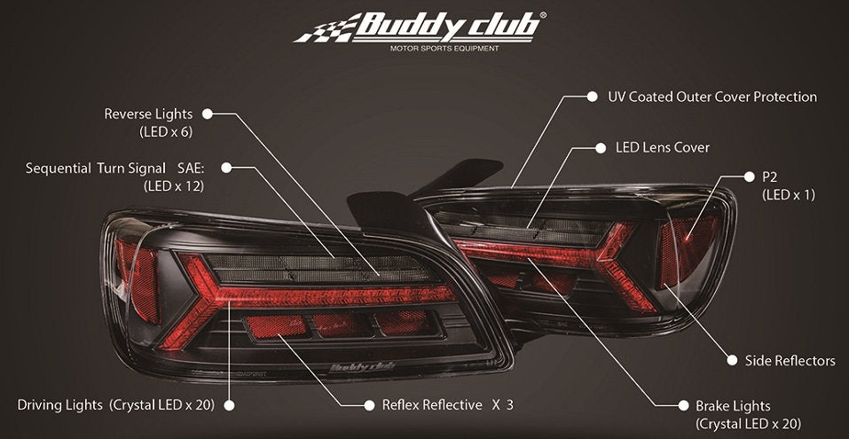 | Product Description | Buddy club LED tail lamp kit for the popular S2000. It is designed exclusively for AP1 and AP2, and can be installed by bolt-on. The flowing sequential winker can be switched between lighting and blinking. Collaboratively developed with DEPO, which is world-famous for producing various lamps, its outstanding quality and innovative design overwhelm others. Conforms to safety standards and has a one-year warranty for peace of mind. |