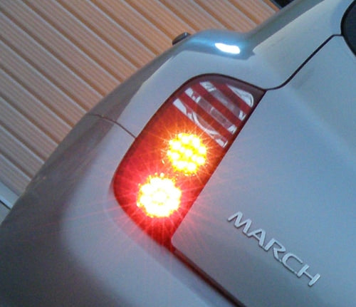 | Product Description | K12 series March LED tail turn signal LED double Gatling Vulcan type!! New left and right set When the Gatling Vulcan is lit, the rear view shines with outstanding impact!! The turn signal also uses high brightness LED. Resistor included. Red type with outstanding luxury finish The back also has a red slit in the Mercedes-Benz style, giving it a luxurious feel. Compatible models: K12 series March 2002~ |