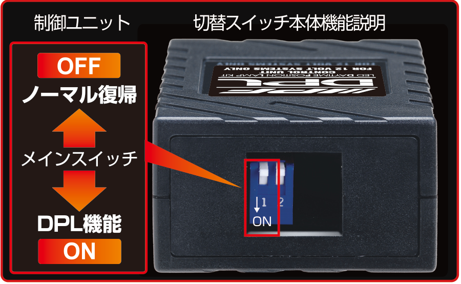 | Remarks | *Note: This product is a vehicle inspection compatible product designed based on Safety Standards Article 42 Detailed Notification Article 140 "Restrictions on Other Lights, etc." However, it may be deemed non-compliant by vehicle inspection stations in each prefecture. Therefore, we recommend that you switch the control box switch to "return to normal" mode at the time of your vehicle inspection. |